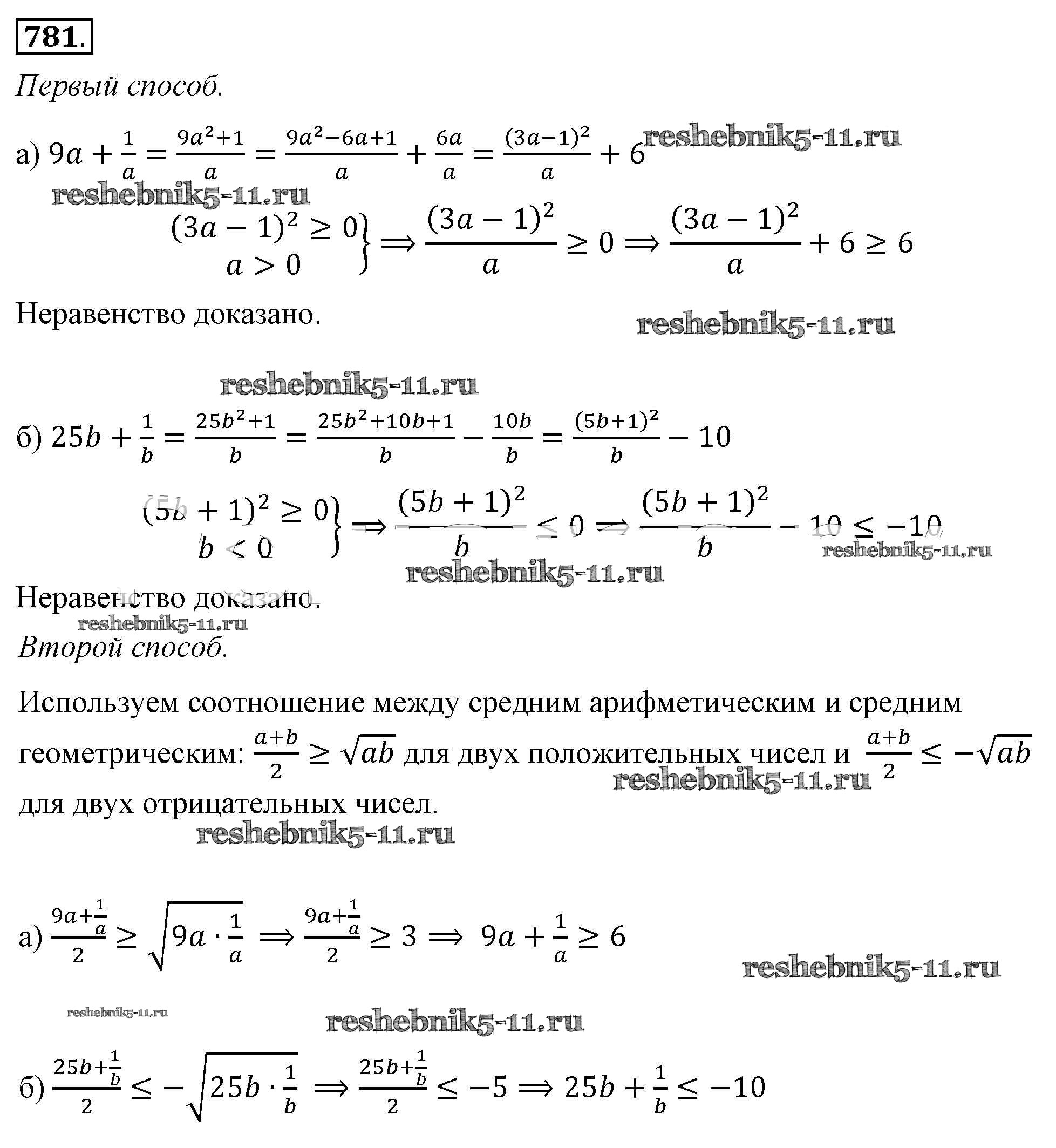 Готовая домашняя работа с ответами по Алгебре за 8 класс Макарычев, Миндюк, Нешков, Суворова Учебник Просвещение 2016 ФГОС - Упражнения 781