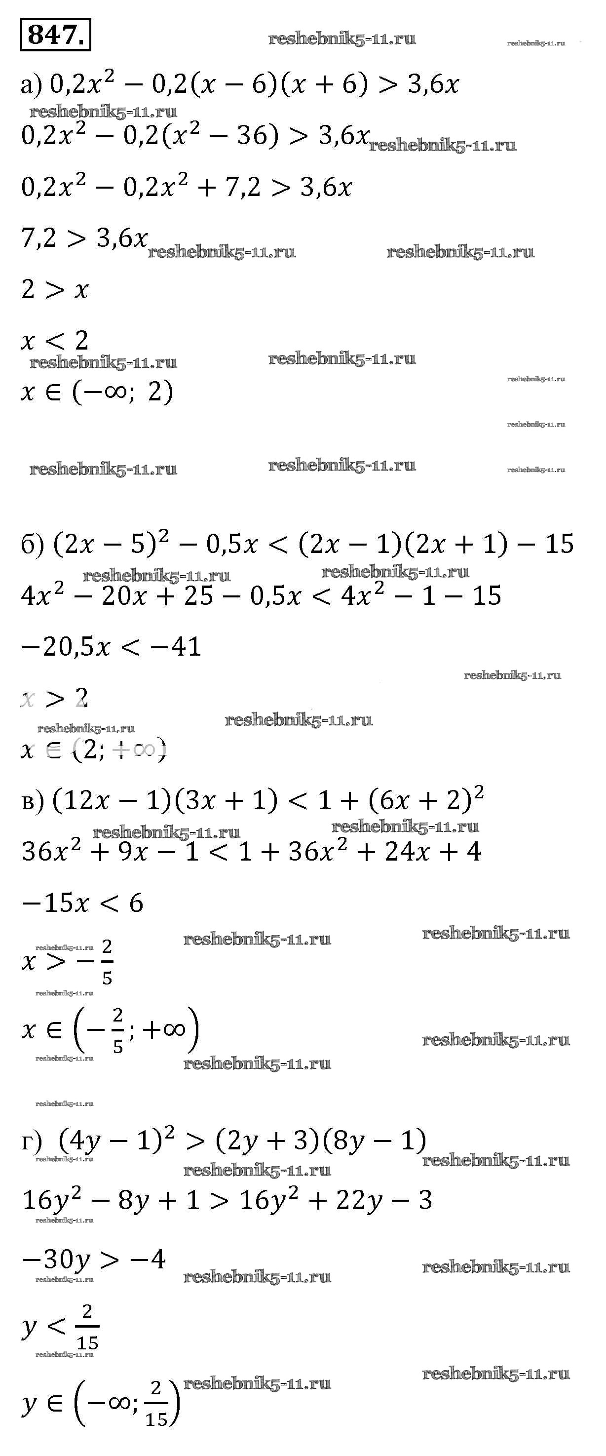 Готовая домашняя работа с ответами по Алгебре за 8 класс Макарычев, Миндюк, Нешков, Суворова Учебник Просвещение 2016 ФГОС - Упражнения 847