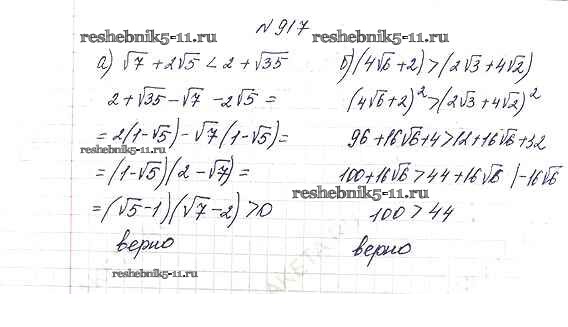 Готовая домашняя работа с ответами по Алгебре за 8 класс Макарычев, Миндюк, Нешков, Суворова Учебник Просвещение 2016 ФГОС - Упражнения 917