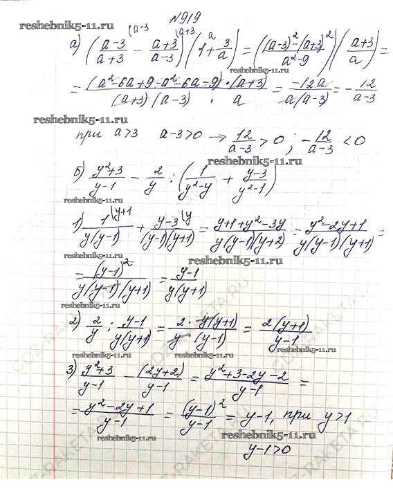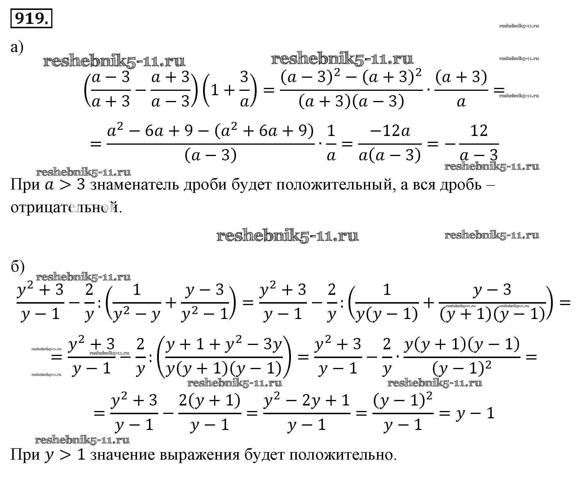 Готовая домашняя работа с ответами по Алгебре за 8 класс Макарычев, Миндюк, Нешков, Суворова Учебник Просвещение 2016 ФГОС - Упражнения 919