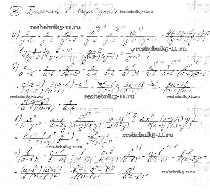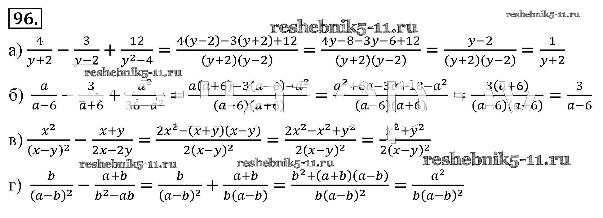 Готовая домашняя работа с ответами по Алгебре за 8 класс Макарычев, Миндюк, Нешков, Суворова Учебник Просвещение 2016 ФГОС - Упражнения 96