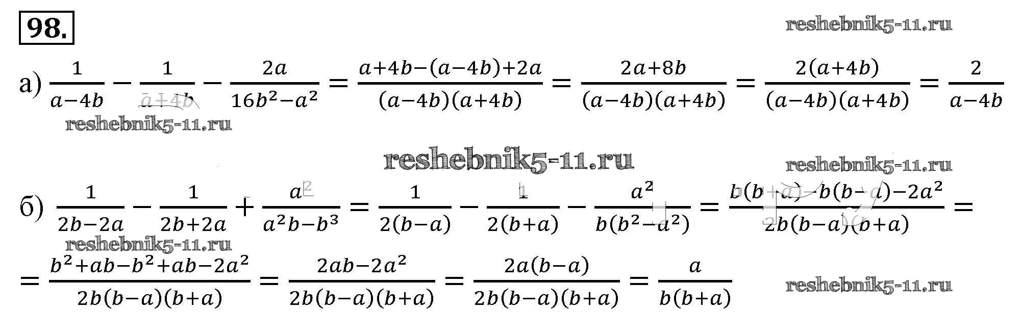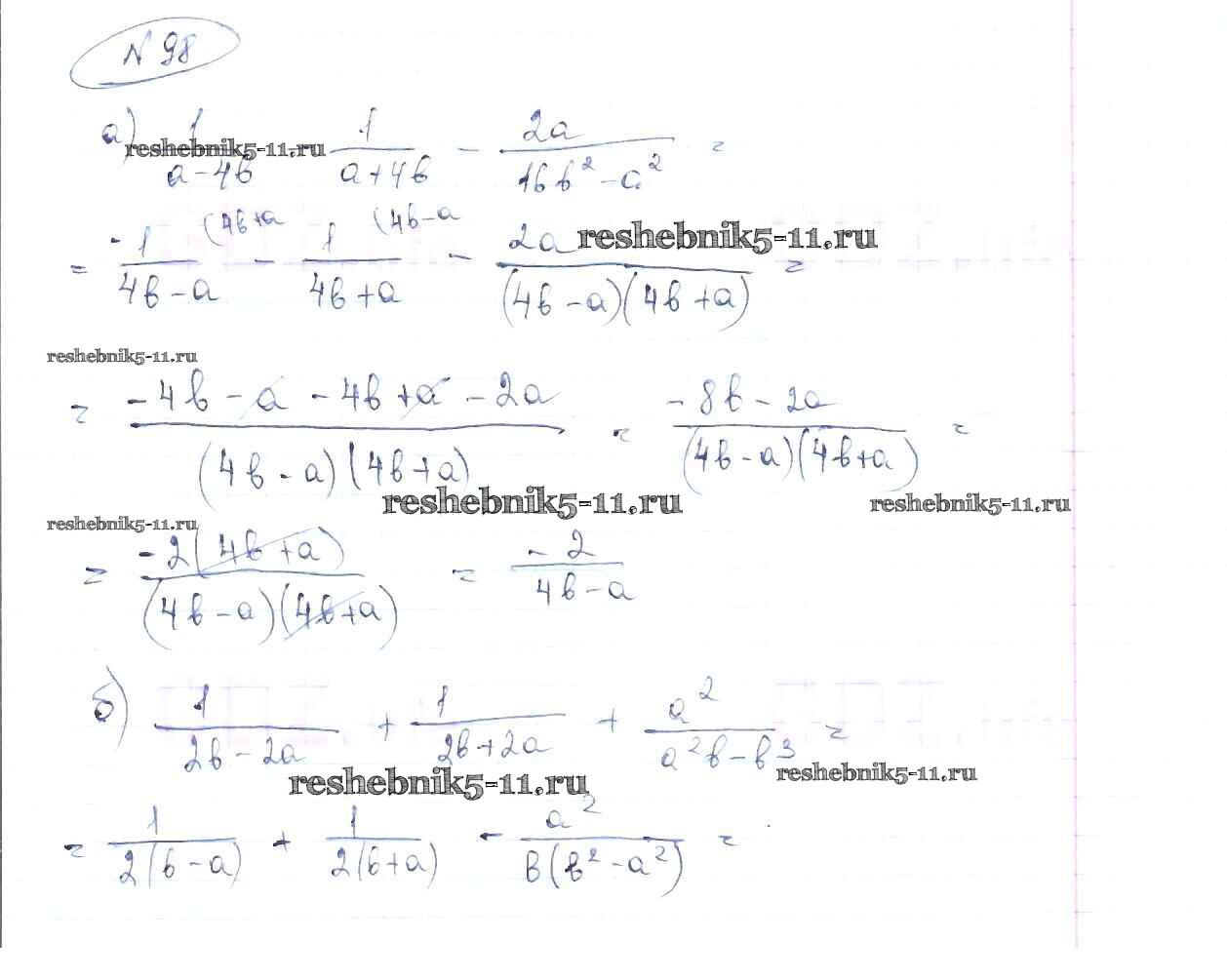 Готовая домашняя работа с ответами по Алгебре за 8 класс Макарычев, Миндюк, Нешков, Суворова Учебник Просвещение 2016 ФГОС - Упражнения 98