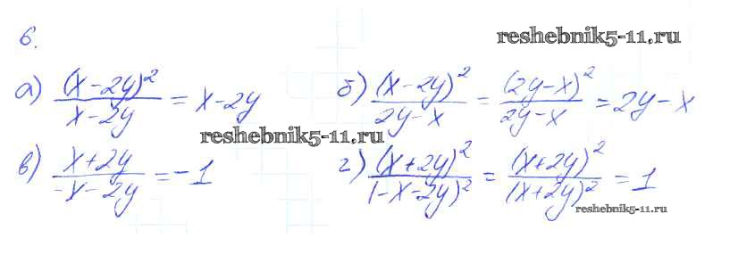 Готовая домашняя работа с ответами по Алгебре за 8 класс Миндюк, Шлыкова Рабочая тетрадь УМК Часть 1, 2 Просвещение 2016 ФГОС - §2. Основное свойство дроби. Сокращение дробей 6