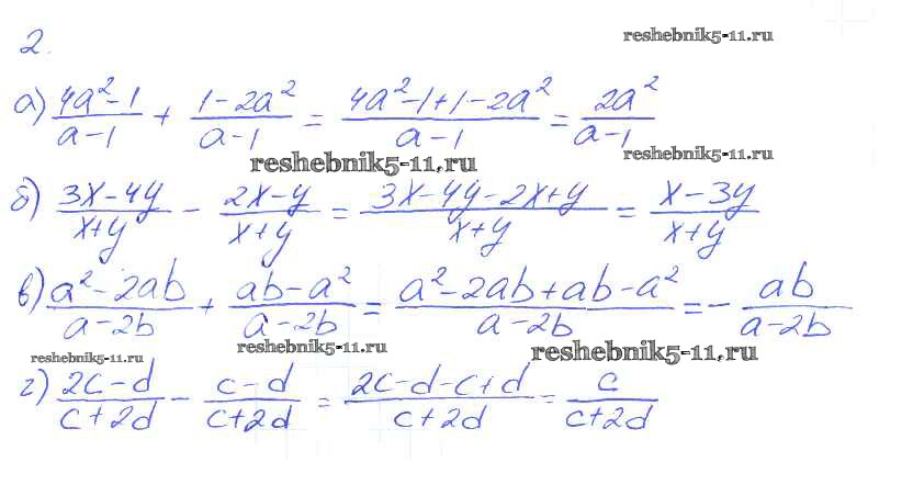 Готовая домашняя работа с ответами по Алгебре за 8 класс Миндюк, Шлыкова Рабочая тетрадь УМК Часть 1, 2 Просвещение 2016 ФГОС - §3. Сложение и вычитание дробей с одинаковыми знаменателями 2