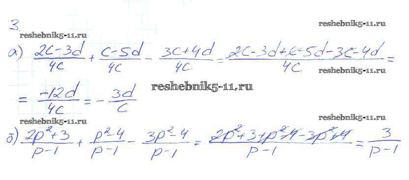 Готовая домашняя работа с ответами по Алгебре за 8 класс Миндюк, Шлыкова Рабочая тетрадь УМК Часть 1, 2 Просвещение 2016 ФГОС - §3. Сложение и вычитание дробей с одинаковыми знаменателями 3