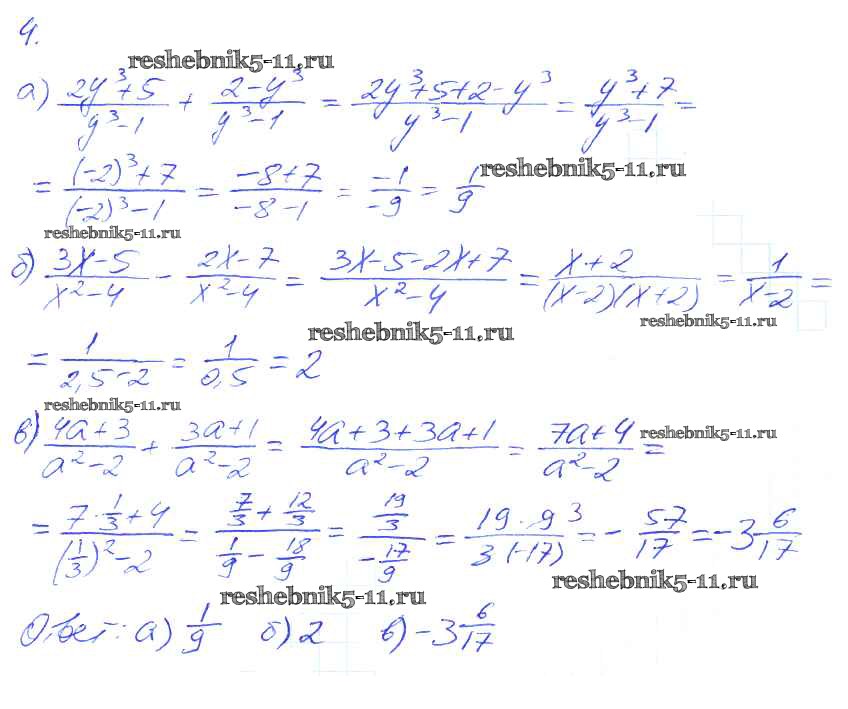 Готовая домашняя работа с ответами по Алгебре за 8 класс Миндюк, Шлыкова Рабочая тетрадь УМК Часть 1, 2 Просвещение 2016 ФГОС - §3. Сложение и вычитание дробей с одинаковыми знаменателями 4