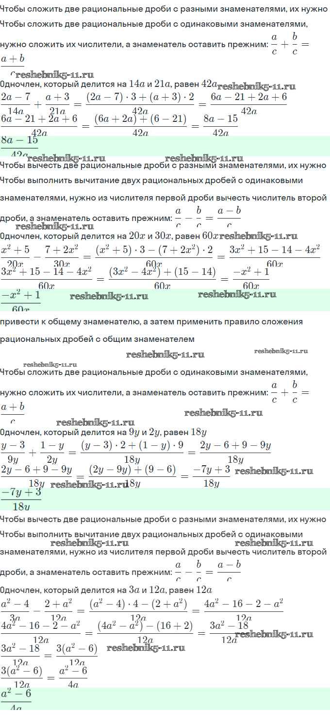 Готовая домашняя работа с ответами по Алгебре за 8 класс Миндюк, Шлыкова Рабочая тетрадь УМК Часть 1, 2 Просвещение 2016 ФГОС - §4. Сложение и вычитание дробей с разными знаменателями 2