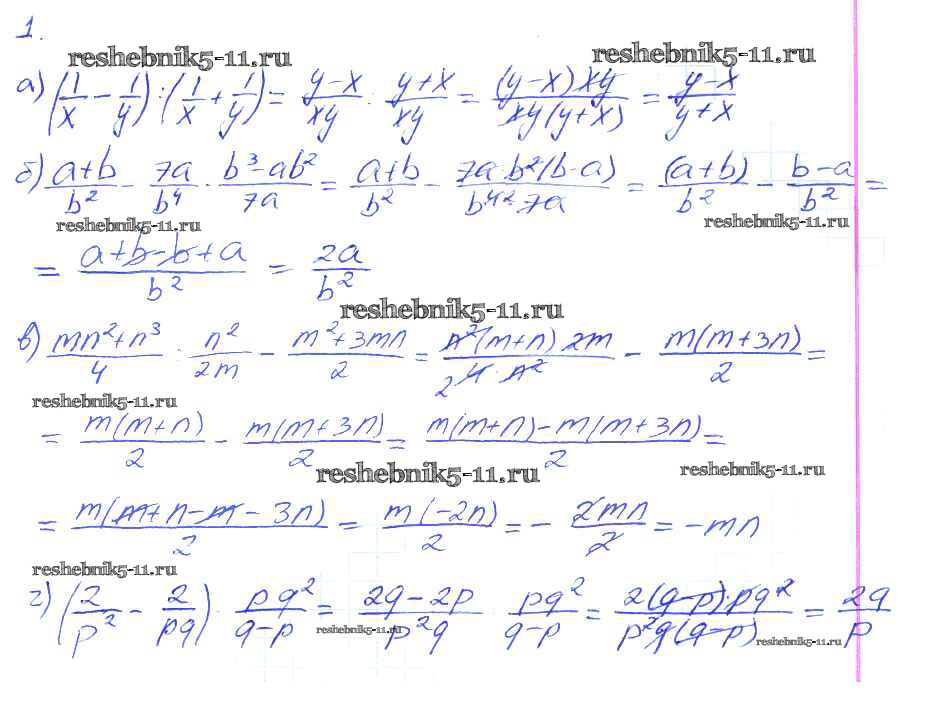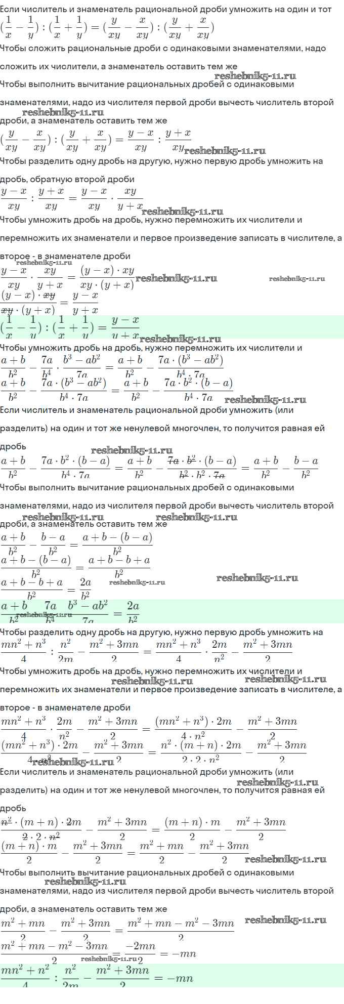 Готовая домашняя работа с ответами по Алгебре за 8 класс Миндюк, Шлыкова Рабочая тетрадь УМК Часть 1, 2 Просвещение 2016 ФГОС - §7. Преобразование рациональных выражений 1