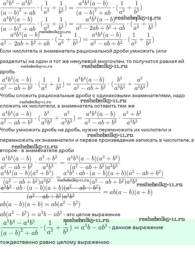 Готовая домашняя работа с ответами по Алгебре за 8 класс Миндюк, Шлыкова Рабочая тетрадь УМК Часть 1, 2 Просвещение 2016 ФГОС - §7. Преобразование рациональных выражений 3