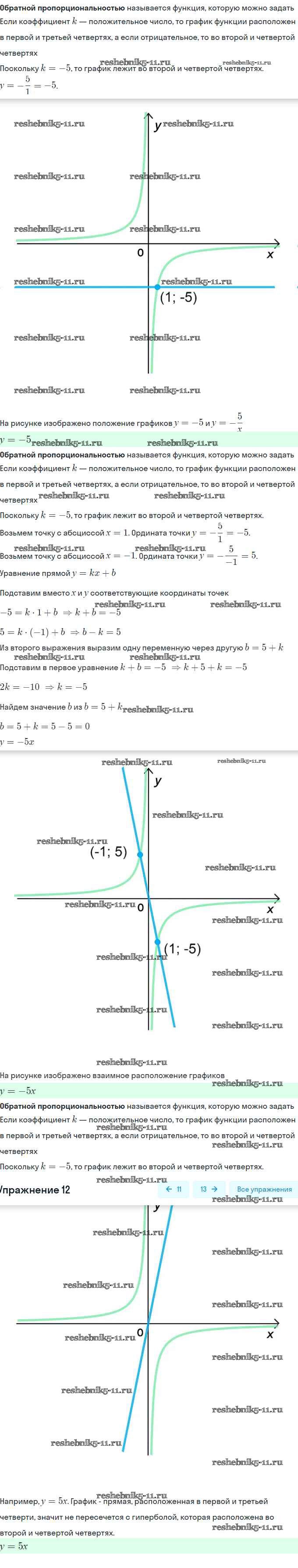 Готовая домашняя работа с ответами по Алгебре за 8 класс Миндюк, Шлыкова Рабочая тетрадь УМК Часть 1, 2 Просвещение 2016 ФГОС - §8. Функция y=k/x и её график 12