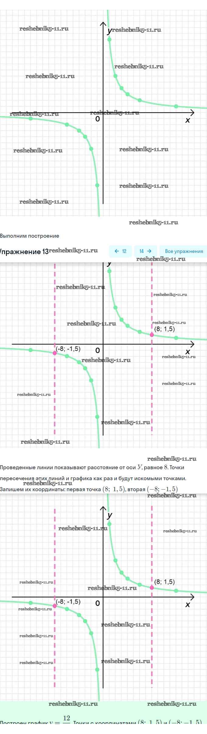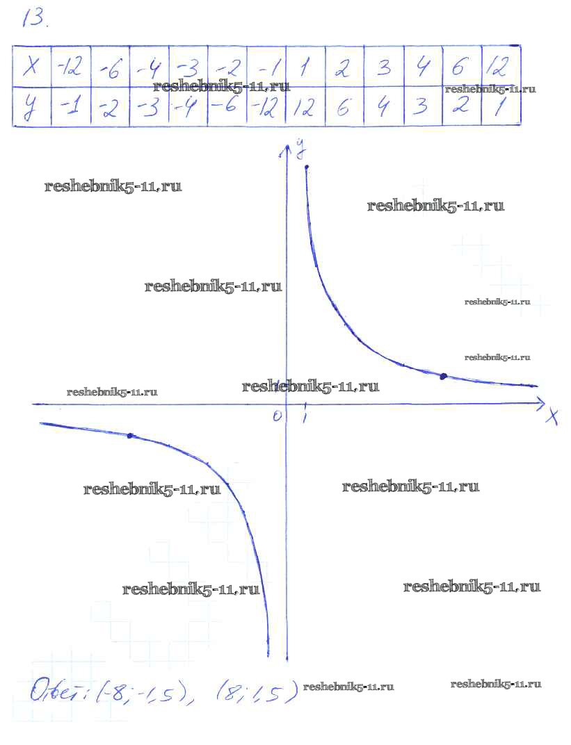 Готовая домашняя работа с ответами по Алгебре за 8 класс Миндюк, Шлыкова Рабочая тетрадь УМК Часть 1, 2 Просвещение 2016 ФГОС - §8. Функция y=k/x и её график 13