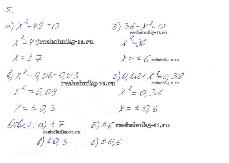 Готовая домашняя работа с ответами по Алгебре за 8 класс Миндюк, Шлыкова Рабочая тетрадь УМК Часть 1, 2 Просвещение 2016 ФГОС - §12. Уравнение x^2=a 5
