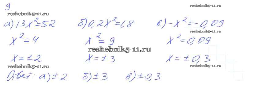 Готовая домашняя работа с ответами по Алгебре за 8 класс Миндюк, Шлыкова Рабочая тетрадь УМК Часть 1, 2 Просвещение 2016 ФГОС - §12. Уравнение x^2=a 9