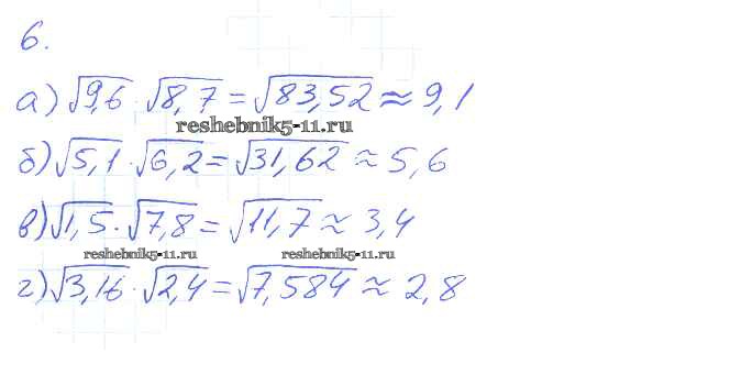 Готовая домашняя работа с ответами по Алгебре за 8 класс Миндюк, Шлыкова Рабочая тетрадь УМК Часть 1, 2 Просвещение 2016 ФГОС - §15. Квадратный корень из произведения и дроби 6