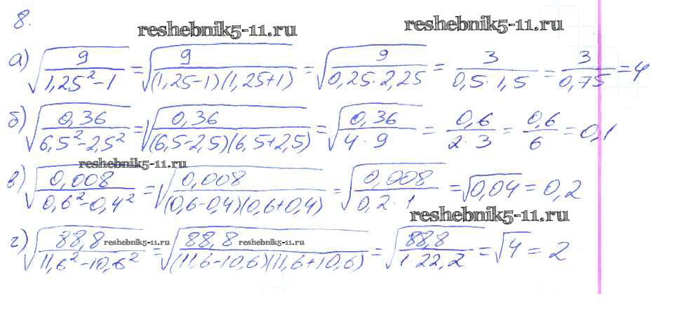 Готовая домашняя работа с ответами по Алгебре за 8 класс Миндюк, Шлыкова Рабочая тетрадь УМК Часть 1, 2 Просвещение 2016 ФГОС - §15. Квадратный корень из произведения и дроби 8