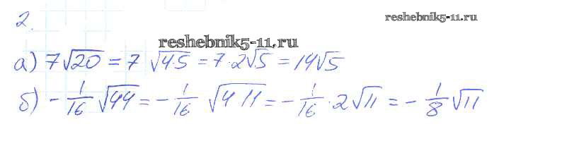 Готовая домашняя работа с ответами по Алгебре за 8 класс Миндюк, Шлыкова Рабочая тетрадь УМК Часть 1, 2 Просвещение 2016 ФГОС - §17. Вынесение множителя за знак корня. Внесение множителя под знак корня 2
