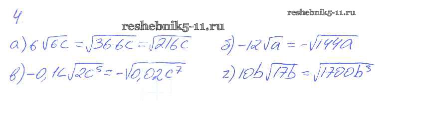 Готовая домашняя работа с ответами по Алгебре за 8 класс Миндюк, Шлыкова Рабочая тетрадь УМК Часть 1, 2 Просвещение 2016 ФГОС - §17. Вынесение множителя за знак корня. Внесение множителя под знак корня 4