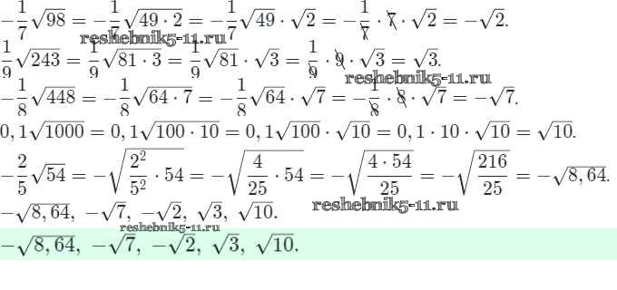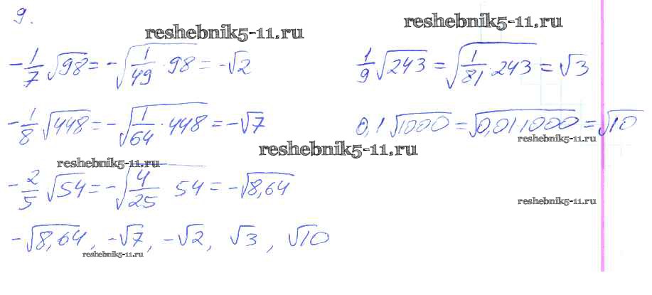 Готовая домашняя работа с ответами по Алгебре за 8 класс Миндюк, Шлыкова Рабочая тетрадь УМК Часть 1, 2 Просвещение 2016 ФГОС - §17. Вынесение множителя за знак корня. Внесение множителя под знак корня 9
