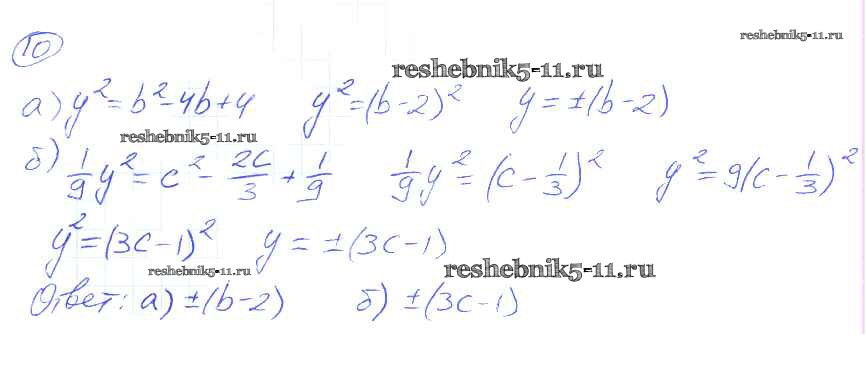Готовая домашняя работа с ответами по Алгебре за 8 класс Миндюк, Шлыкова Рабочая тетрадь УМК Часть 1, 2 Просвещение 2016 ФГОС - §19. Неполные квадратные уравнения 10