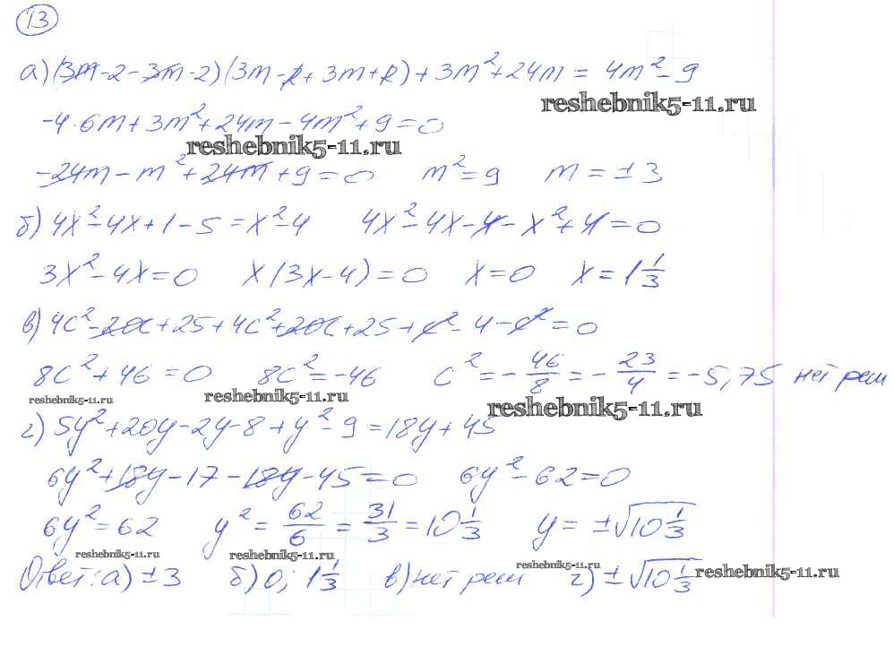 Готовая домашняя работа с ответами по Алгебре за 8 класс Миндюк, Шлыкова Рабочая тетрадь УМК Часть 1, 2 Просвещение 2016 ФГОС - §19. Неполные квадратные уравнения 13