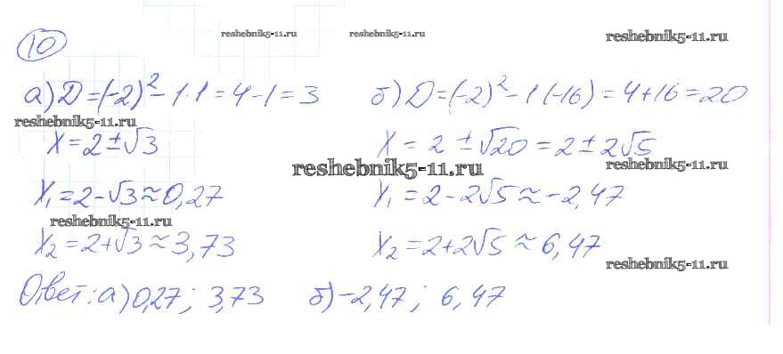 Готовая домашняя работа с ответами по Алгебре за 8 класс Миндюк, Шлыкова Рабочая тетрадь УМК Часть 1, 2 Просвещение 2016 ФГОС - §20. Формула корней квадратного уравнения 10