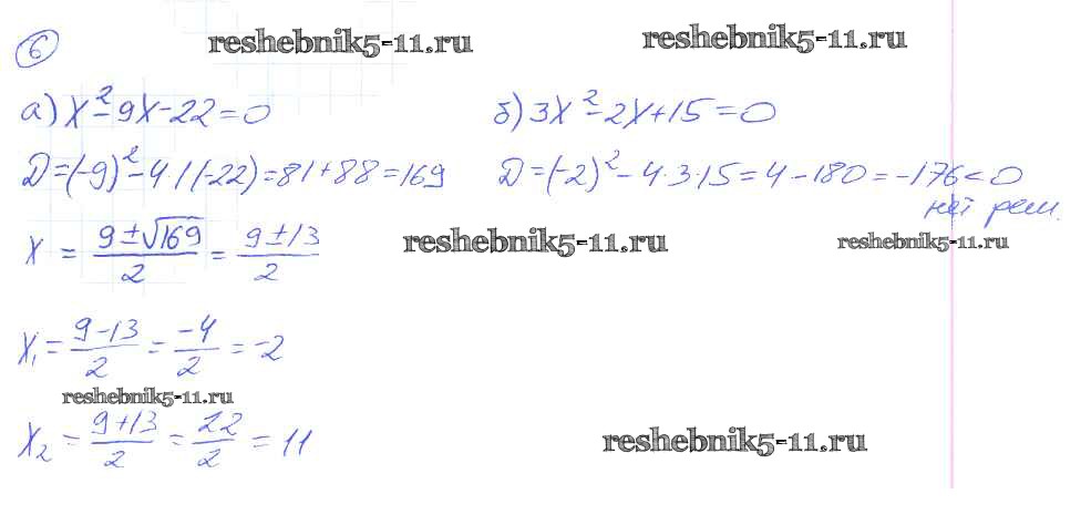Готовая домашняя работа с ответами по Алгебре за 8 класс Миндюк, Шлыкова Рабочая тетрадь УМК Часть 1, 2 Просвещение 2016 ФГОС - §20. Формула корней квадратного уравнения 6
