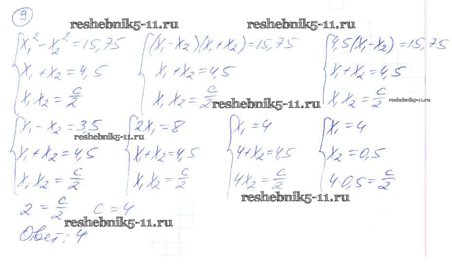 Готовая домашняя работа с ответами по Алгебре за 8 класс Миндюк, Шлыкова Рабочая тетрадь УМК Часть 1, 2 Просвещение 2016 ФГОС - §22. Теорема Виета 9