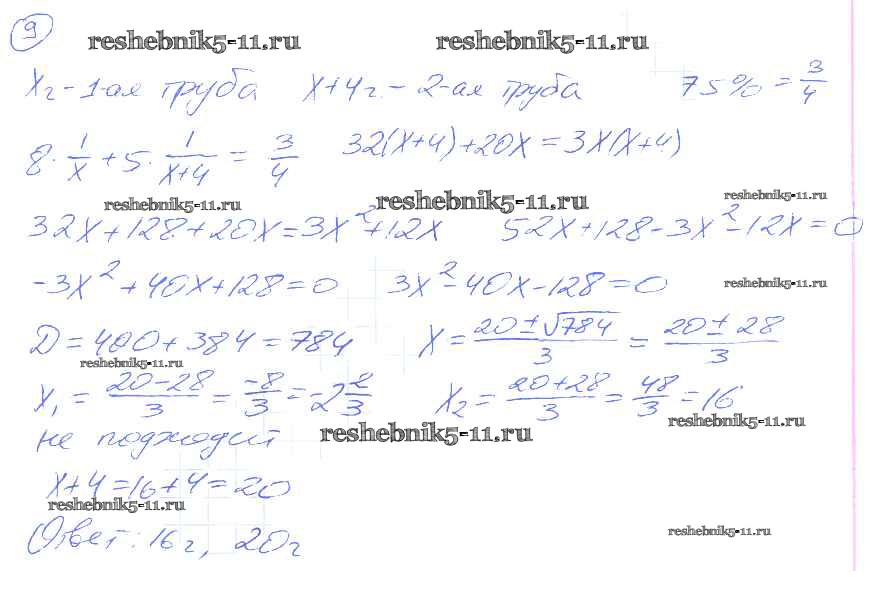Готовая домашняя работа с ответами по Алгебре за 8 класс Миндюк, Шлыкова Рабочая тетрадь УМК Часть 1, 2 Просвещение 2016 ФГОС - §24. Решение задач с помощью рациональных уравнений 9