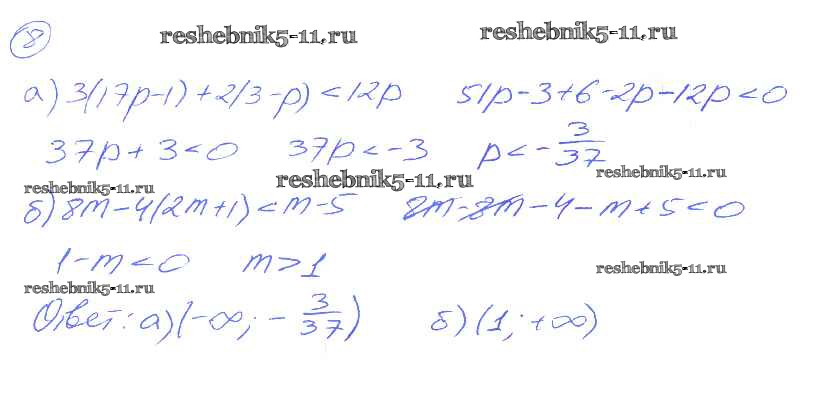 Готовая домашняя работа с ответами по Алгебре за 8 класс Миндюк, Шлыкова Рабочая тетрадь УМК Часть 1, 2 Просвещение 2016 ФГОС - §31. Решение неравенств с одной переменной 8