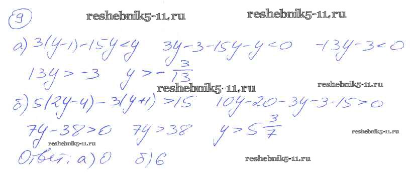 Готовая домашняя работа с ответами по Алгебре за 8 класс Миндюк, Шлыкова Рабочая тетрадь УМК Часть 1, 2 Просвещение 2016 ФГОС - §31. Решение неравенств с одной переменной 9