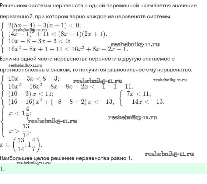 Готовая домашняя работа с ответами по Алгебре за 8 класс Миндюк, Шлыкова Рабочая тетрадь УМК Часть 1, 2 Просвещение 2016 ФГОС - §32. Решение систем неравенств с одной переменной 14