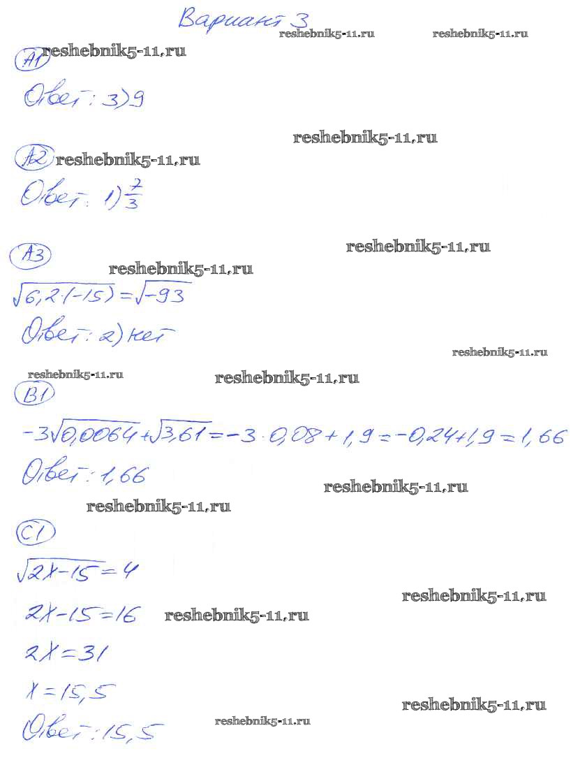 Готовая домашняя работа с ответами по Алгебре за 8 класс Глазков, Гаиашвили Самостоятельные и контрольные работы УМК Экзамен 2012 ФГОС - СР-10. Варианты 3