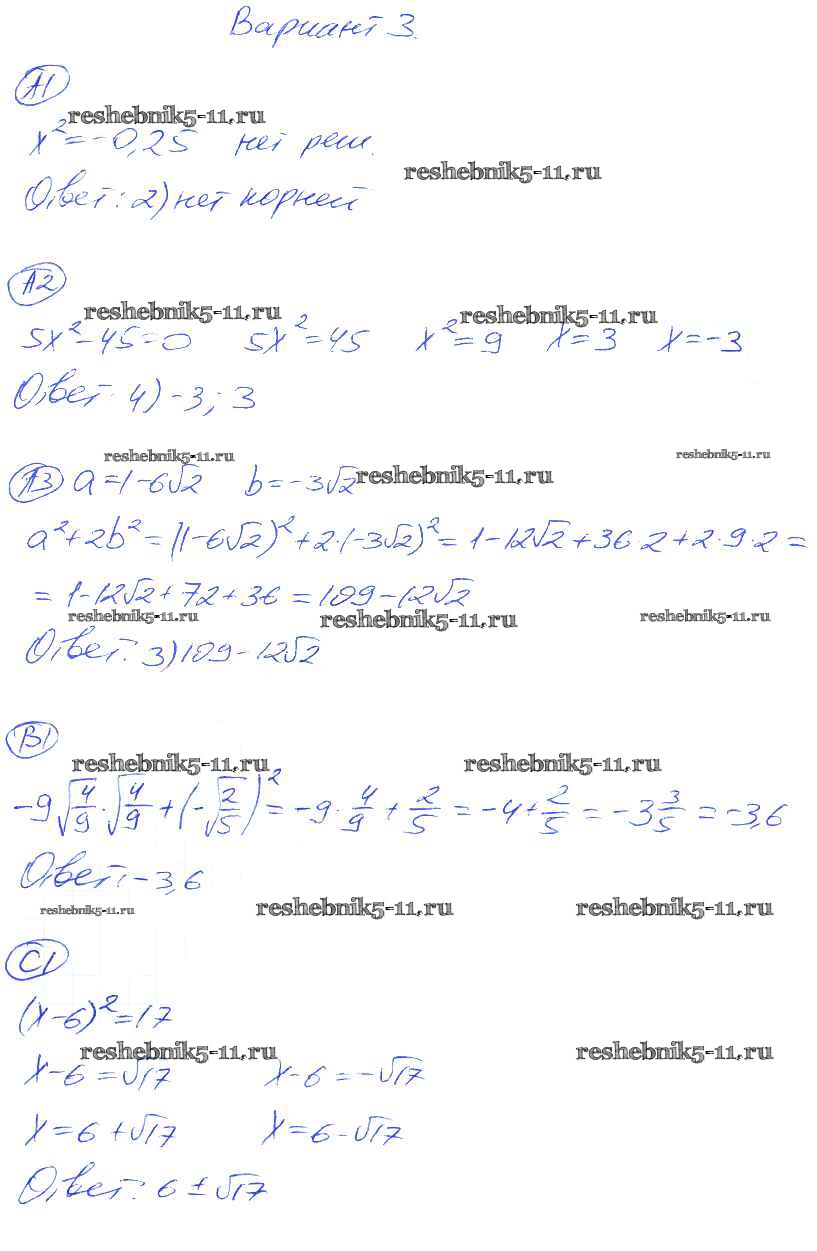 Готовая домашняя работа с ответами по Алгебре за 8 класс Глазков, Гаиашвили Самостоятельные и контрольные работы УМК Экзамен 2012 ФГОС - СР-11. Варианты 3
