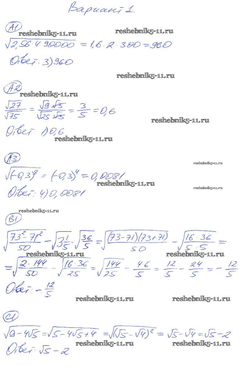 Готовая домашняя работа с ответами по Алгебре за 8 класс Глазков, Гаиашвили Самостоятельные и контрольные работы УМК Экзамен 2012 ФГОС - СР-13. Варианты 1