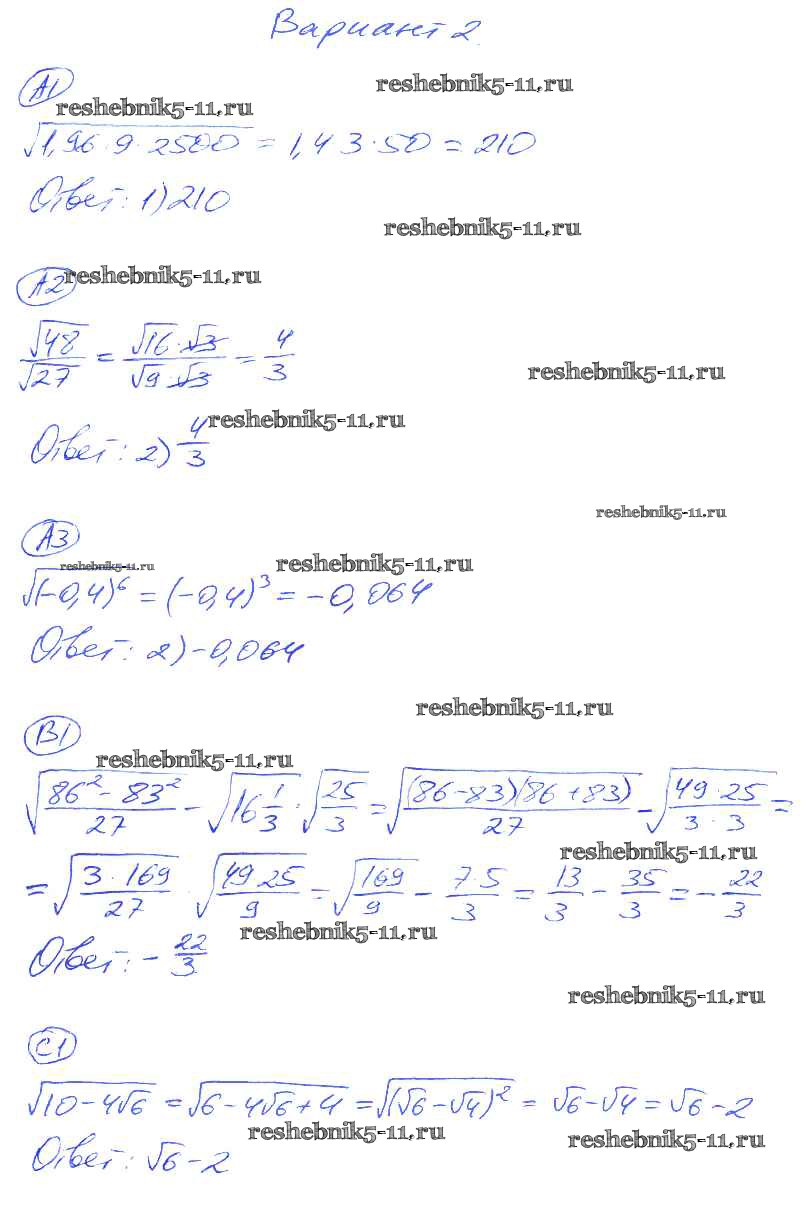 Готовая домашняя работа с ответами по Алгебре за 8 класс Глазков, Гаиашвили Самостоятельные и контрольные работы УМК Экзамен 2012 ФГОС - СР-13. Варианты 2