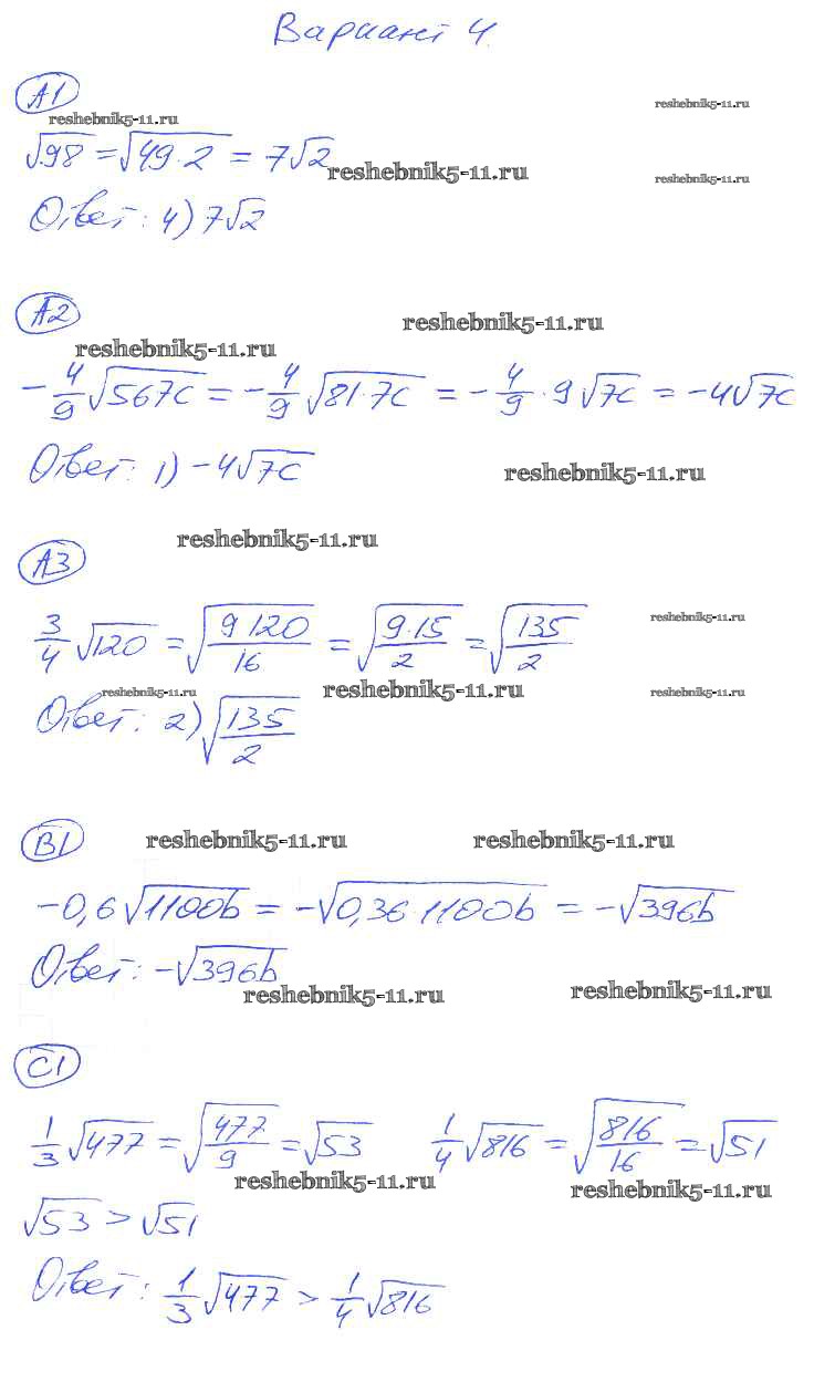 Готовая домашняя работа с ответами по Алгебре за 8 класс Глазков, Гаиашвили Самостоятельные и контрольные работы УМК Экзамен 2012 ФГОС - СР-14. Варианты 4