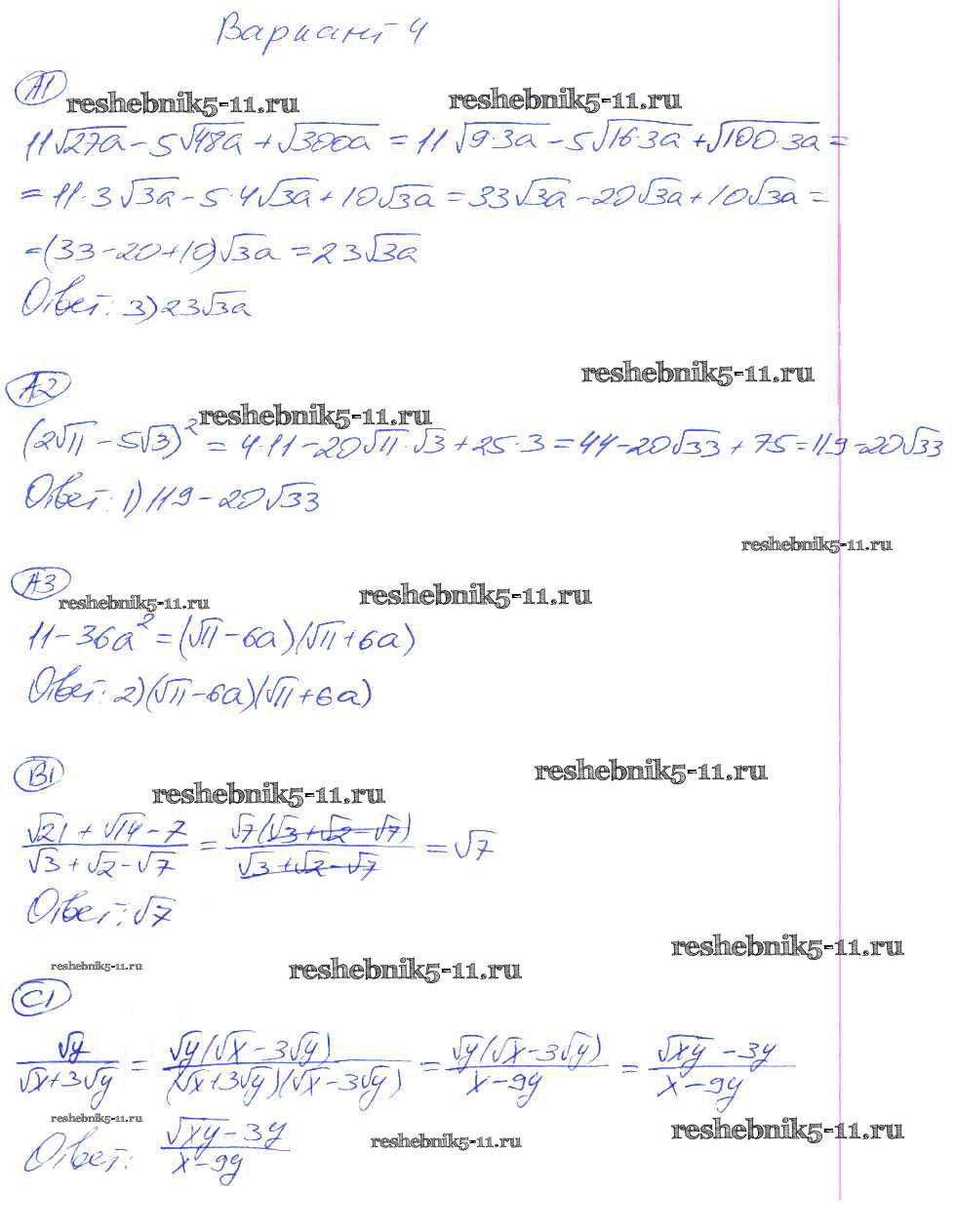 Готовая домашняя работа с ответами по Алгебре за 8 класс Глазков, Гаиашвили Самостоятельные и контрольные работы УМК Экзамен 2012 ФГОС - СР-15. Варианты 4