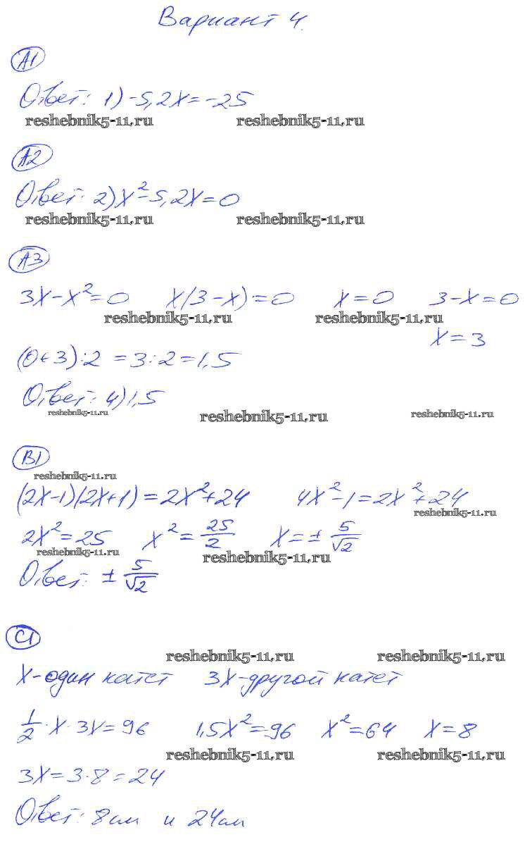 Готовая домашняя работа с ответами по Алгебре за 8 класс Глазков, Гаиашвили Самостоятельные и контрольные работы УМК Экзамен 2012 ФГОС - СР-16. Варианты 4