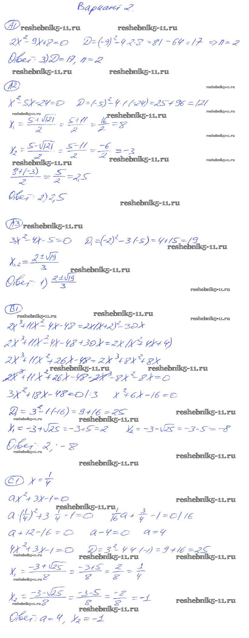 Готовая домашняя работа с ответами по Алгебре за 8 класс Глазков, Гаиашвили Самостоятельные и контрольные работы УМК Экзамен 2012 ФГОС - СР-17. Варианты 2