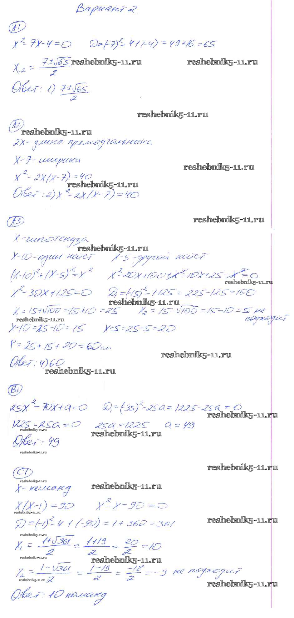 Готовая домашняя работа с ответами по Алгебре за 8 класс Глазков, Гаиашвили Самостоятельные и контрольные работы УМК Экзамен 2012 ФГОС - СР-18. Варианты 2
