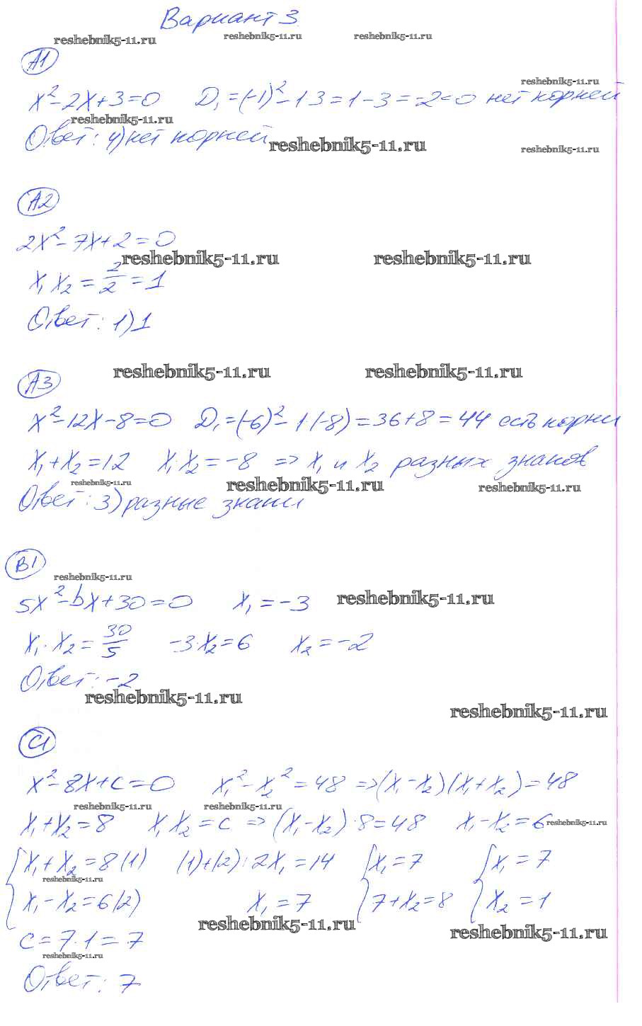 Готовая домашняя работа с ответами по Алгебре за 8 класс Глазков, Гаиашвили Самостоятельные и контрольные работы УМК Экзамен 2012 ФГОС - СР-19. Варианты 3