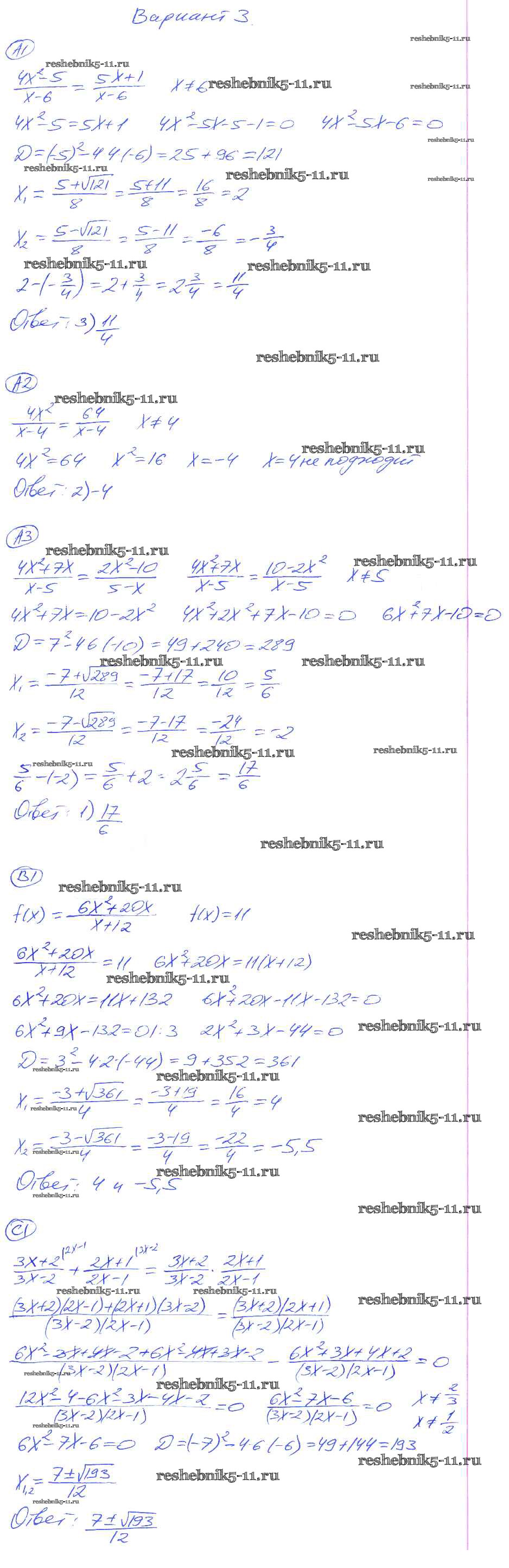 Готовая домашняя работа с ответами по Алгебре за 8 класс Глазков, Гаиашвили Самостоятельные и контрольные работы УМК Экзамен 2012 ФГОС - СР-20. Варианты 3