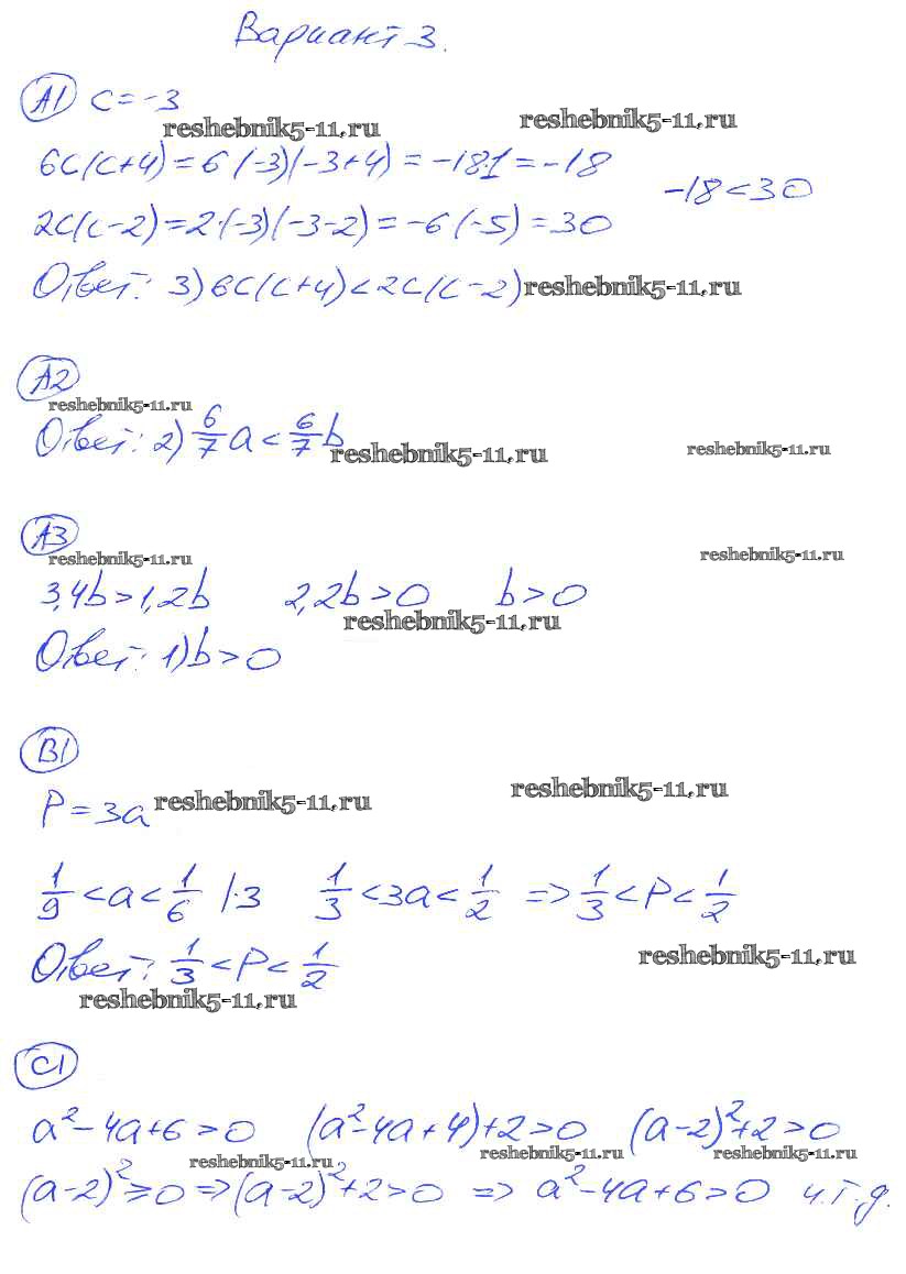 Готовая домашняя работа с ответами по Алгебре за 8 класс Глазков, Гаиашвили Самостоятельные и контрольные работы УМК Экзамен 2012 ФГОС - СР-22. Варианты 3