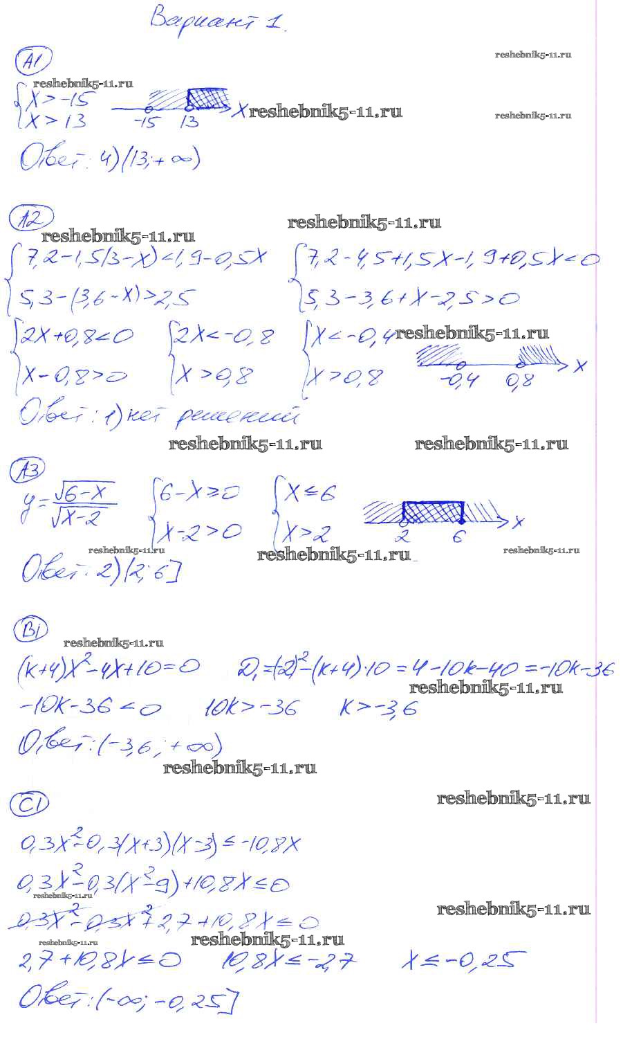 Готовая домашняя работа с ответами по Алгебре за 8 класс Глазков, Гаиашвили Самостоятельные и контрольные работы УМК Экзамен 2012 ФГОС - СР-26. Варианты 1