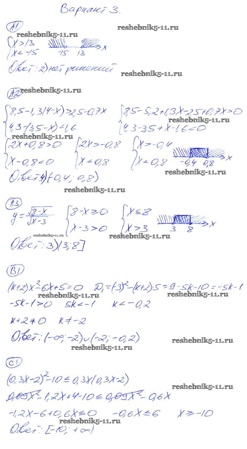Готовая домашняя работа с ответами по Алгебре за 8 класс Глазков, Гаиашвили Самостоятельные и контрольные работы УМК Экзамен 2012 ФГОС - СР-26. Варианты 3