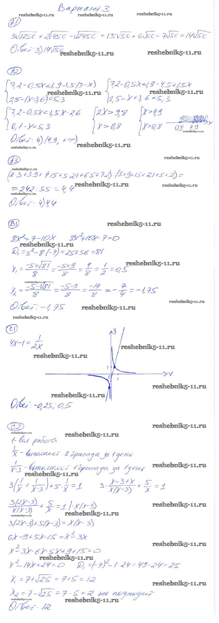 Готовая домашняя работа с ответами по Алгебре за 8 класс Глазков, Гаиашвили Самостоятельные и контрольные работы УМК Экзамен 2012 ФГОС - СР-28. Варианты 3