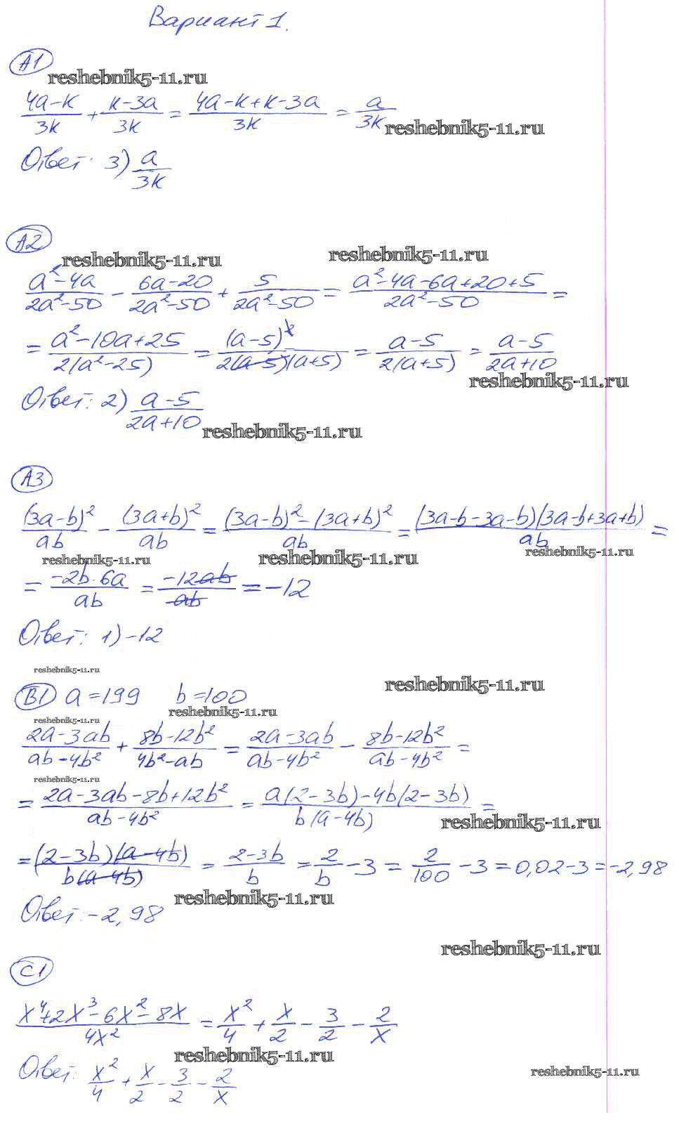 Готовая домашняя работа с ответами по Алгебре за 8 класс Глазков, Гаиашвили Самостоятельные и контрольные работы УМК Экзамен 2012 ФГОС - СР-3. Варианты 1