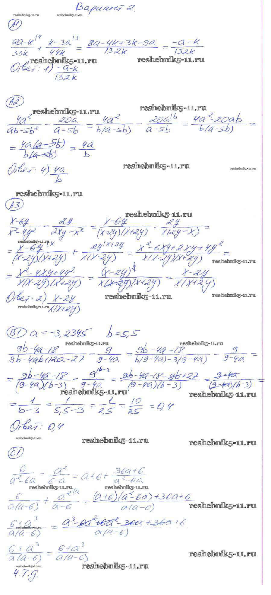 Готовая домашняя работа с ответами по Алгебре за 8 класс Глазков, Гаиашвили Самостоятельные и контрольные работы УМК Экзамен 2012 ФГОС - СР-4. Варианты 2