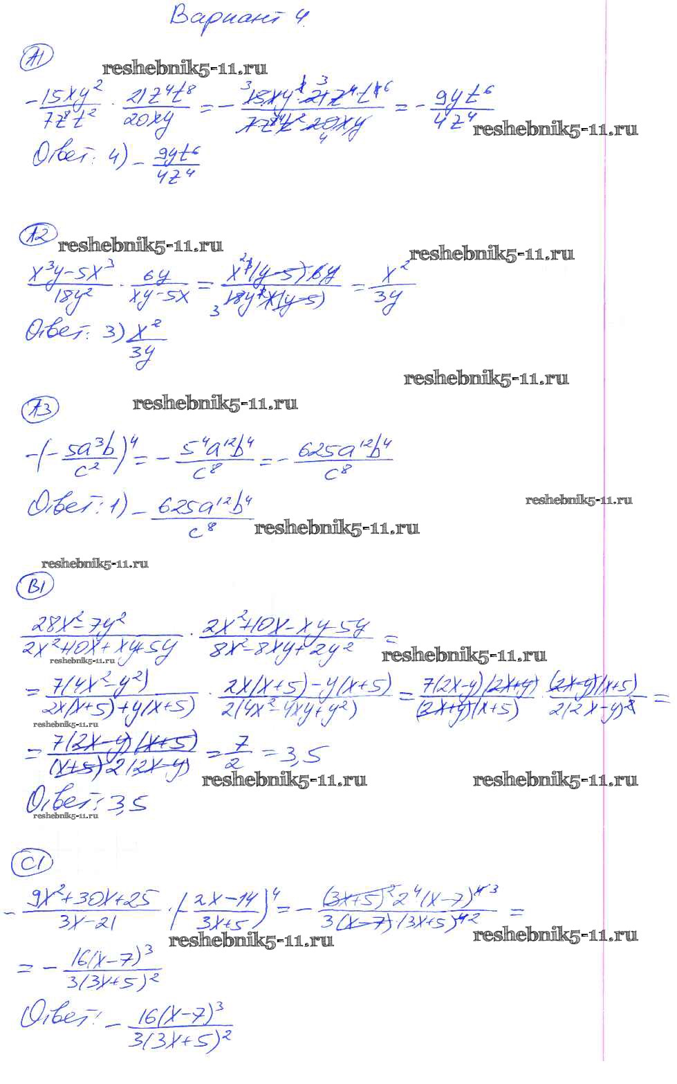Готовая домашняя работа с ответами по Алгебре за 8 класс Глазков, Гаиашвили Самостоятельные и контрольные работы УМК Экзамен 2012 ФГОС - СР-5. Варианты 4