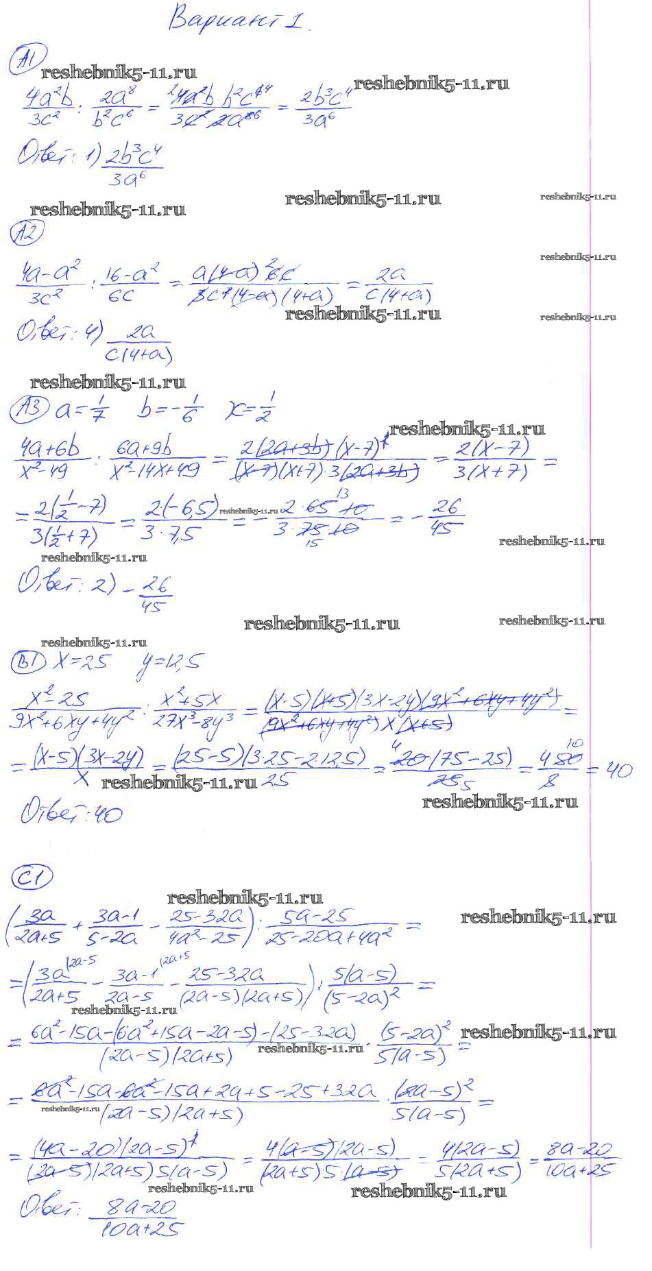 Готовая домашняя работа с ответами по Алгебре за 8 класс Глазков, Гаиашвили Самостоятельные и контрольные работы УМК Экзамен 2012 ФГОС - СР-6. Варианты 1